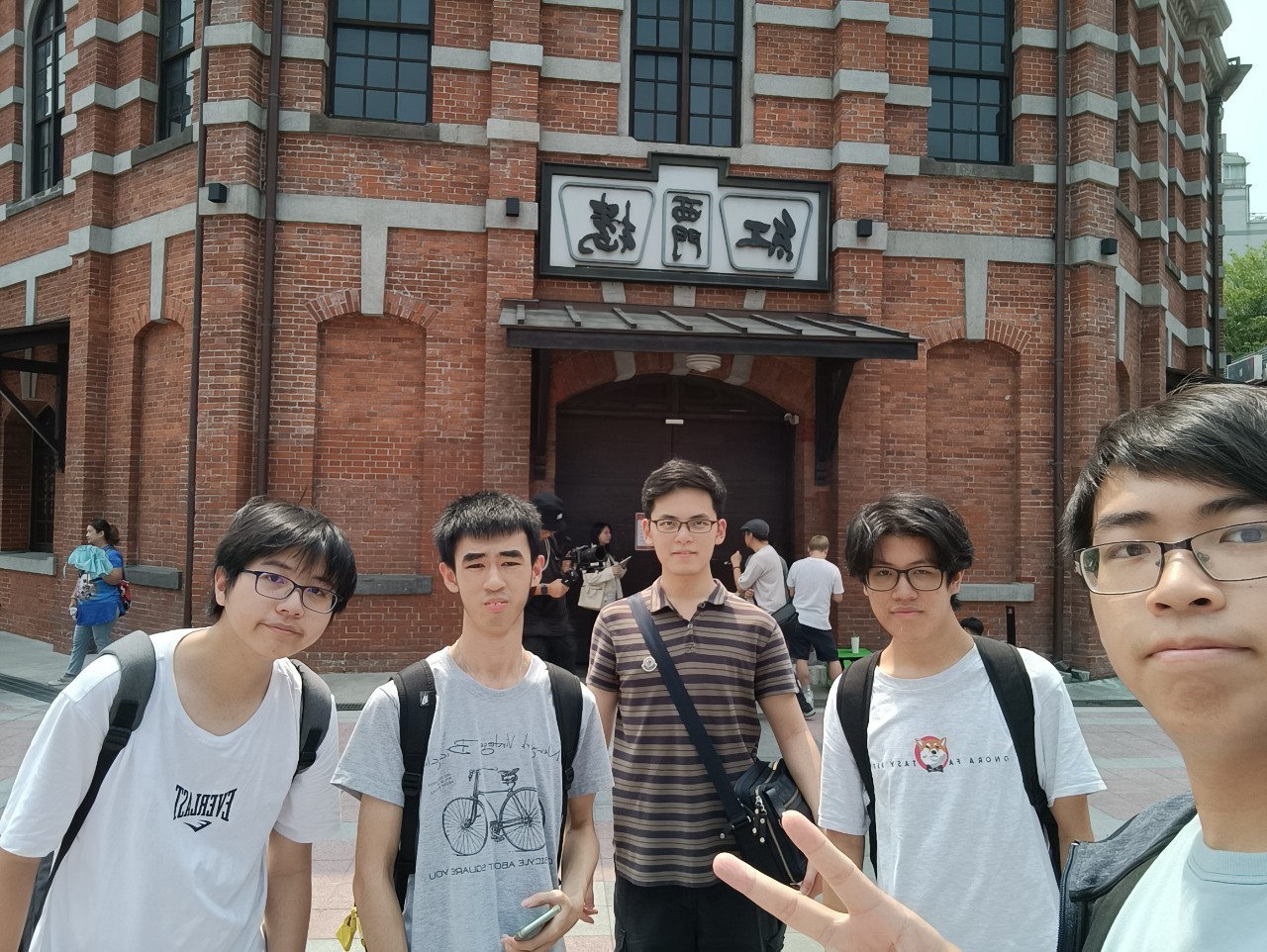 將全體組員置於鏡頭前方,並以西門紅樓為背景,使用廣角鏡頭,以平視的角度,手持自拍