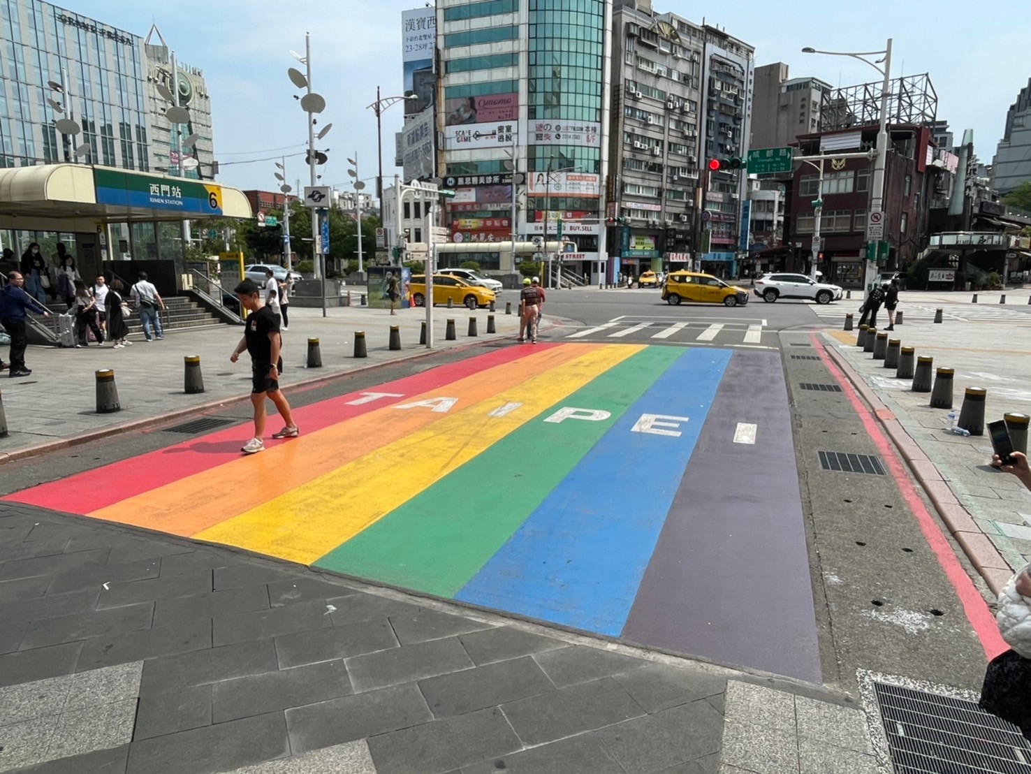 捷運西門站6號出口的6號彩虹裝置藝術,象徵台北是個性別友善的都市。