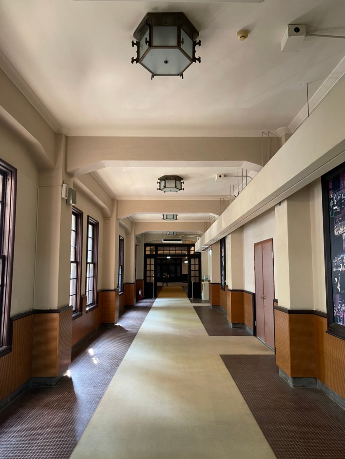 中山堂內的走廊。建築整體揉合部分西式元素。中山堂和總統府的設計者皆為井手薰。
